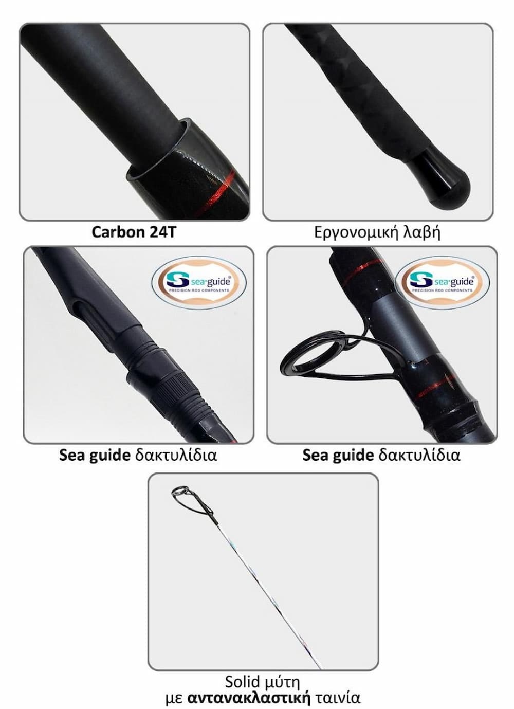 🔹 Sea Guide Components: Εξοπλισμένο με οδηγούς και βάση μηχανισμού της Sea Guide, διασφαλίζοντας την άψογη ροή της πετονιάς και την αντοχή στα δύσκολα περιβάλλοντα με αλμύρα.