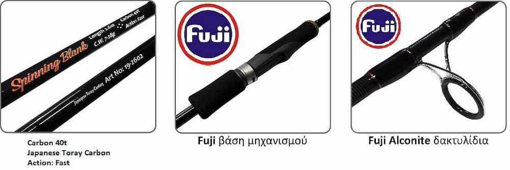 🔹 Japanese Toray Carbon 40tn: Η κορυφαία ποιότητα άνθρακα στον κόσμο προσφέρει ένα blank με εκρηκτικό "νεύρο", εξαιρετικά χαμηλό βάρος και αντοχή που θα σας βγάλει ασπροπρόσωπους στις πιο δύσκολες μάχες.