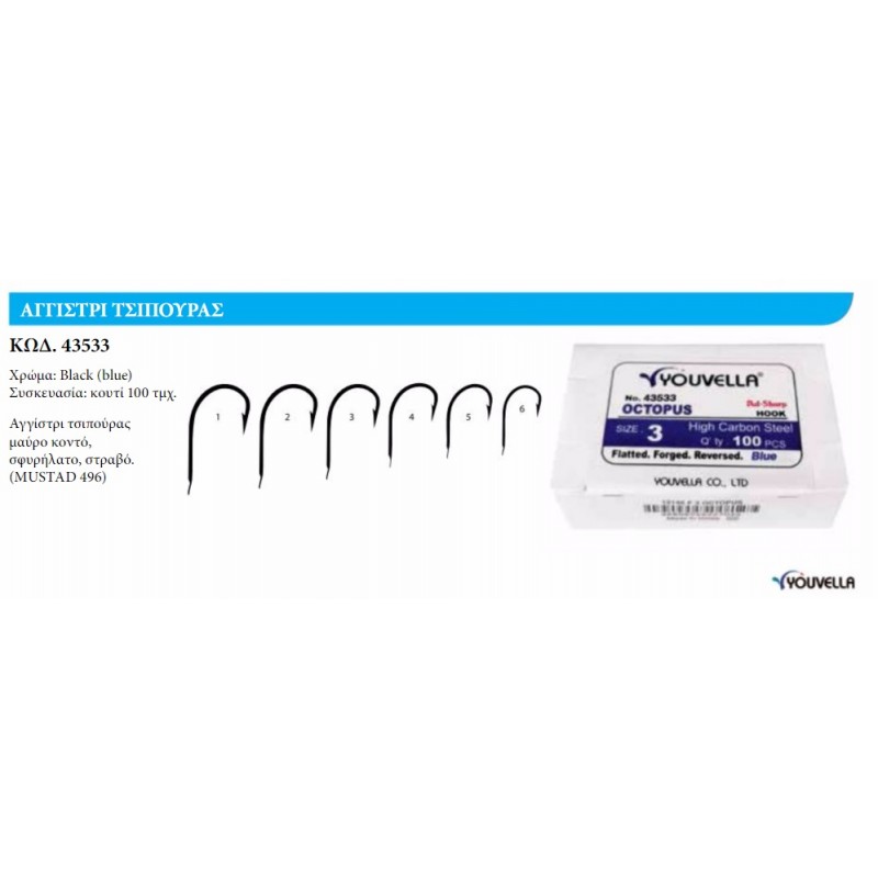Το αγκίστρι 43533 Soft Bait της Youvella είναι ένας κλασικός κωδικός για τα Ελληνικά νερά, ιδανικό για το ψάρεμα τσιπούρας, μουρμούρας, σαργών, σκαθαριών, κλπ.