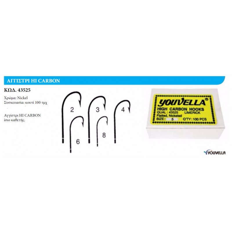 Το αγκίστρι 43525 Hi Carbon της Youvella είναι ένας κλασικός κωδικός για τα Ελληνικά νερά, ιδανικό για το ψάρεμα αφρόψαρων.