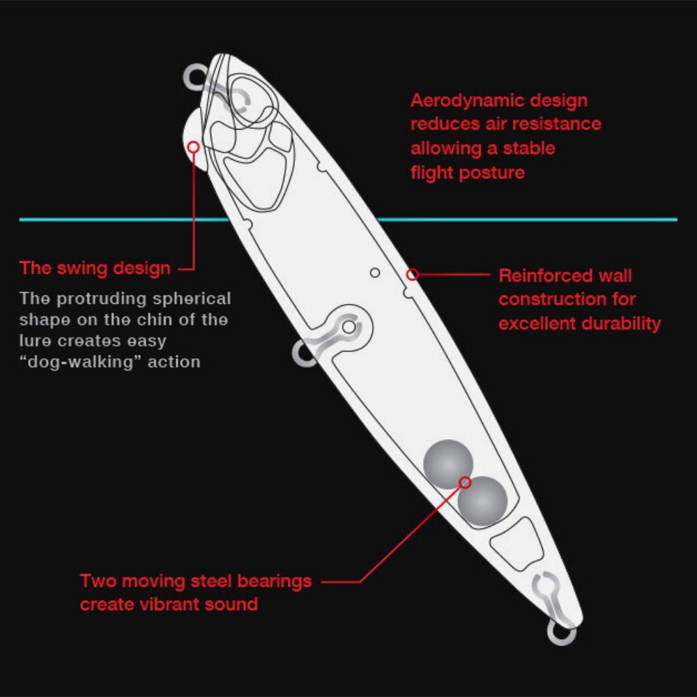 Το σχήμα του μελετημένο ώστε να κινείται χωρίς δυσκολία ακόμη και σε ταραγμένα νερά. Το αεροδυναμικό του σώμα όχι μόνο του επιτρέπει μακρινές βολές αλλά τέλεια κίνηση. Στο σώμα του φιλοξενεί έναν ισορροπιστή στο μπροστινό μέρος ο οποίος βοηθά στο να γίνει με μεγάλη ευκολία η κίνηση “walk the dog” και το τεχνητό να ολισθαίνει στην επιφάνεια του νερού.