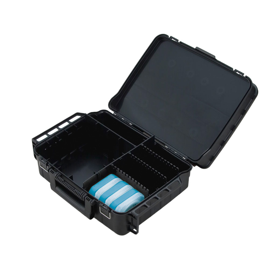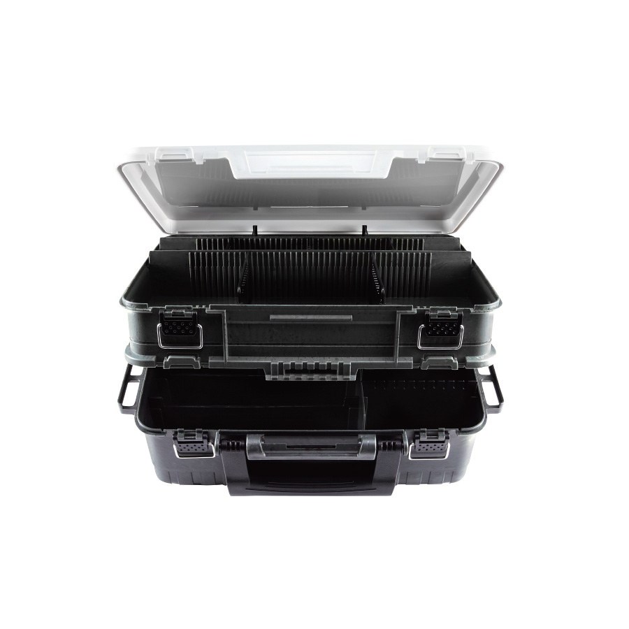 Το κάτω μέρος μπορεί να αναδιοργανωθεί με πολλούς τρόπους και να χωριστεί και με άλλες κασετίνες. Ο χώρος για τα τεχνητά δολώματα μπορεί να χωρέσει και άλλη κασετίνα. Βολικές θέσεις για να κρέμονται εργαλεία και πένσες όταν η κασετίνα είναι ανοιχτή αλλά και όταν είναι κλειστή και μεταφέρεται.