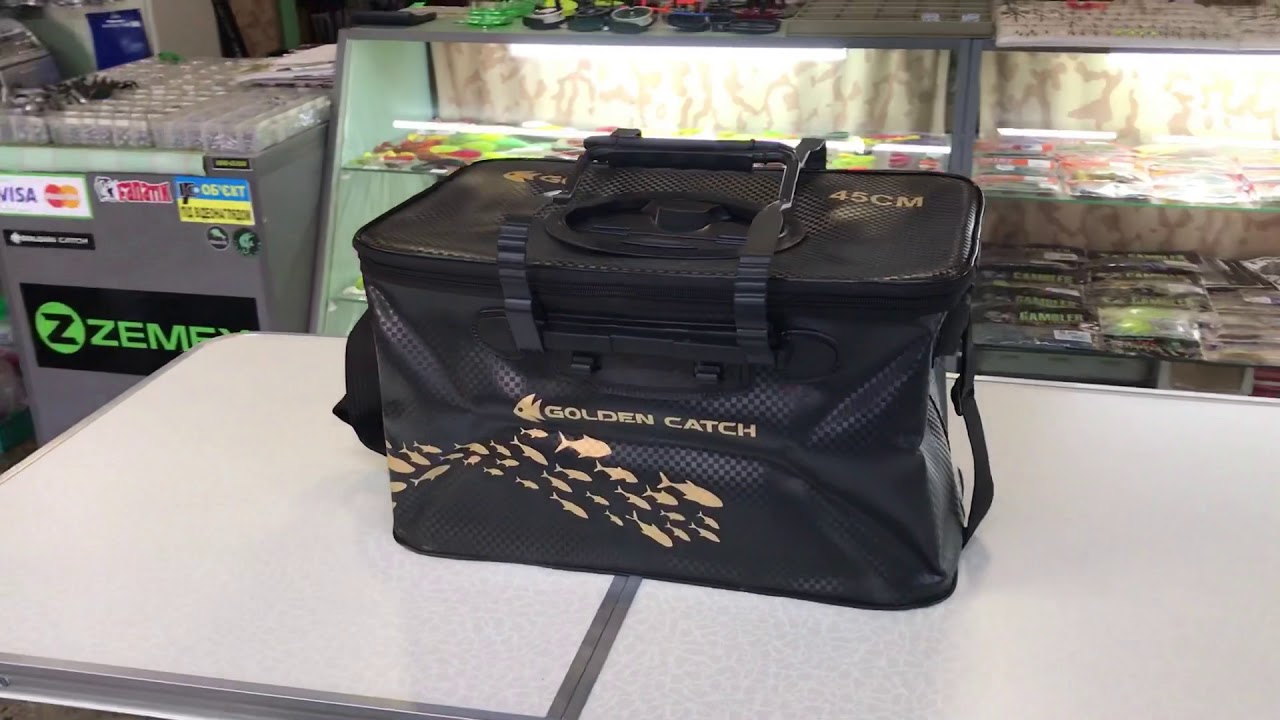 Τα σακίδια της Golden Catch περιλαμβάνουν ένα ενιαίο διαμέρισμα με πλαστικό καπάκι στο πάνω μέρος για να μπορούμε να βάζουμε μέσα τα ψάρια μας χωρίς να χρειάζεται να το ανοίγουμε με το φερμουάρ επίσης μπορεί να χρησιμοποιηθεί για τη μεταφορά ζωντανών δολωμάτων ή ακόμα και να βάζουμε το εξοπλισμό μας μέσα.