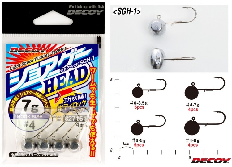 Οι Decoy SGH-1 Shore Head είναι η τέλεια επιλογή για τους φίλους που στοχεύουν σε ποικιλία αλιευμάτων με την χρήση μαλακών δολωμάτων, η σωστή χρήση των οποίων απαιτεί αυξημένη απόσταση κατά τη βολή και γρηγορότερη βύθιση.