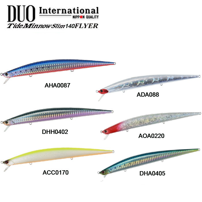 Η DUO αντιμετώπισε στα Tide Minnow Slim Flyer τα περισσότερα από τα προβλήματα που συναντάμε στα μεγάλα τεχνητά: δυσκολία στις βολές και την ανάκτηση λόγω του βάρους, η αντίσταση του αέρα, κ.α. Το τεχνητό Tide Minnow Slim Flyer σχεδιάστηκε για το ψάρεμα μεσαίου μεγέθους θηραμάτων, σε συνθήκες άσχημου καιρού με κύμα και ρεύματα. Με κίνηση «wobble and roll» η DUO προκαλεί τους φίλους του Spinning να δοκιμάσουν το Tide Minnow Slim Flyer.