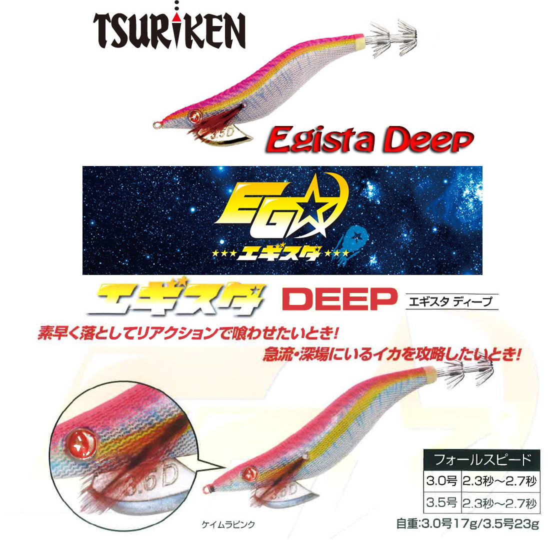 Οι καλαμαριέρες με εξωτερικό βαρίδι Egista Deep της Ιαπωνικής εταιρίας Tsuriken, κατασκευάστηκαν για να σας επιτρέπουν να φτάσετε τα κατώτερα στρώματα της υδάτινης στήλης ταχύτερα, χωρίς να επηρεάζεται από ρεύματα και σε συνδυασμό με τις μακρινές τους βολές, σας δίνουν τη δυνατότητα να διαπιστώσετε τη δραστηριότητα των καλαμαριών σε μια περιοχή.
