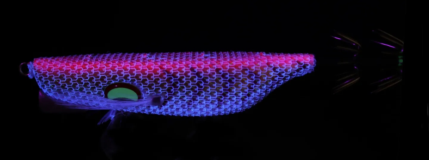 Η κοιλιά προεξέχει πολύ προς τα πίσω και η πλάτη είναι πεπλατυσμένη, ώστε να μπορούν να στερεωθούν εύκολα τα νωπά δολώματα. Τα γκίνια την άκρη τους είναι Glow. Τα μάτια (οι βολβοί των ματιών) είναι σχεδιασμένα να είναι Glow, αυξάνοντας την ένδειξη της παρουσίας τους στο σκοτάδι.