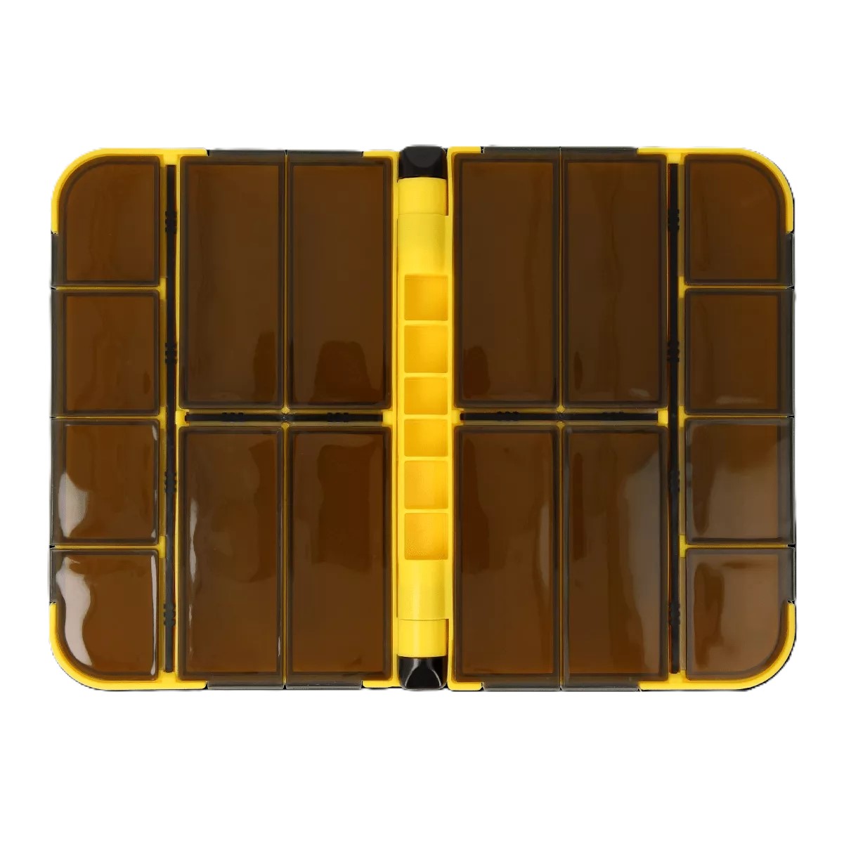 Αυτή η αναδιπλούμενη θήκη από την GOLDEN CATCH διαθέτει 16 θέσεις αποθήκευσης για μικρά παρελκόμενα και αξεσουάρ ψαρέματος. Κάθε πλευρά της διαθέτει 8 θέσεις με ξεχωριστά καπάκια. Τα καπάκια κλείνουν ερμητικά και με ασφάλεια συγκρατώντας και τα πιο μικρά αντικείμενα.