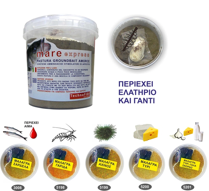 Η μαλάγρα της Technofish είναι σε σκόνη, σε ημι-υγρή κατάσταση και προορίζονται για για Λαβράκια, Τσιπούρες και Σαργούς. Είναι εμπλουτισμένες με υλικά τα οποία διαθέτουν έντονη γεύση και άρωμα και διαρκούν για πολλές ώρες.
